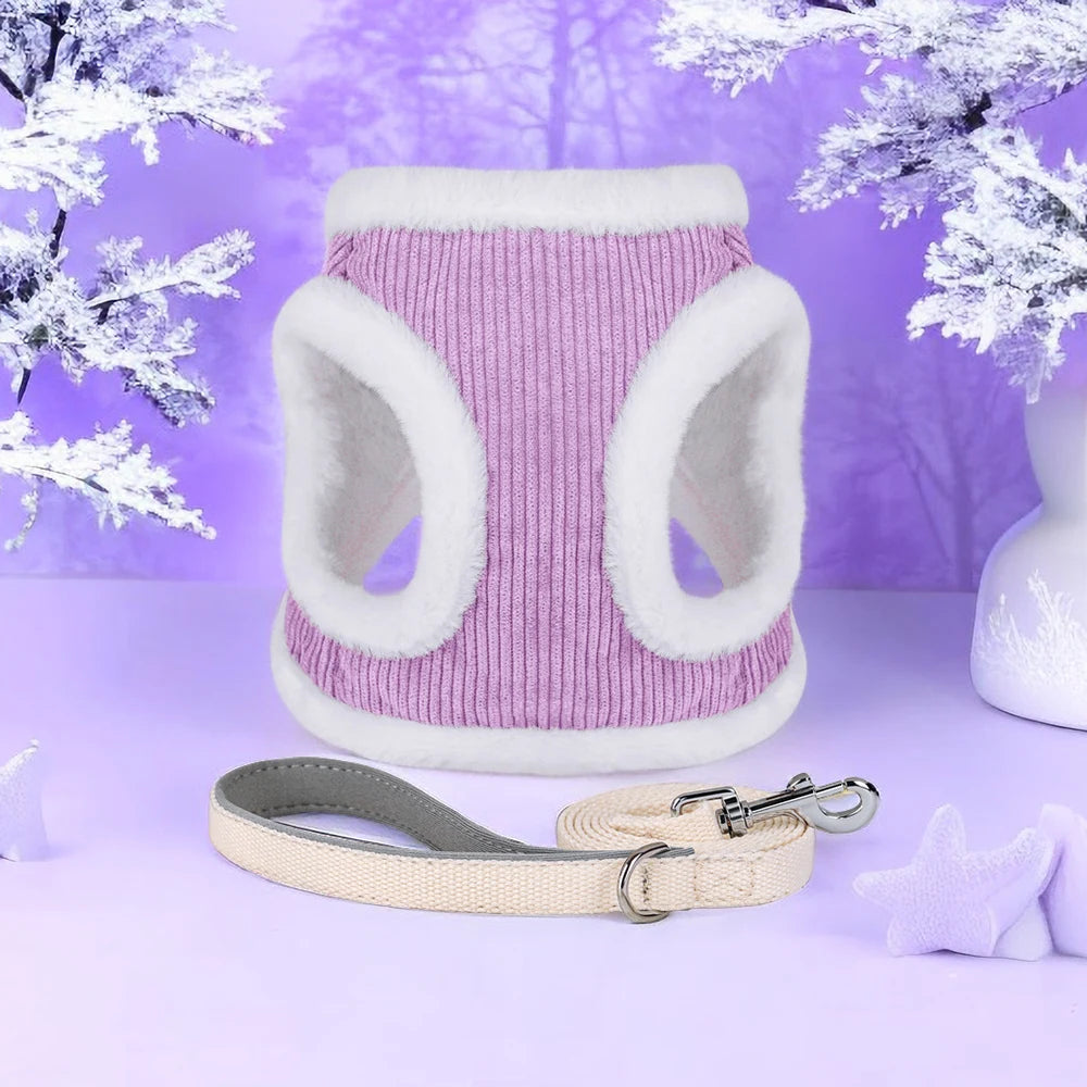 Warm Dog Harness Leash Set Soft Puppy Dog Harnesses With Fur Pet Walking Lead Adjustable Vest For Small Medium Dogs Chihuahua