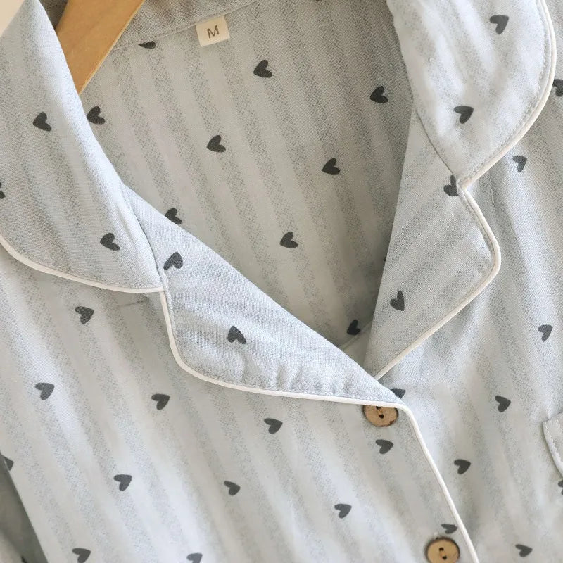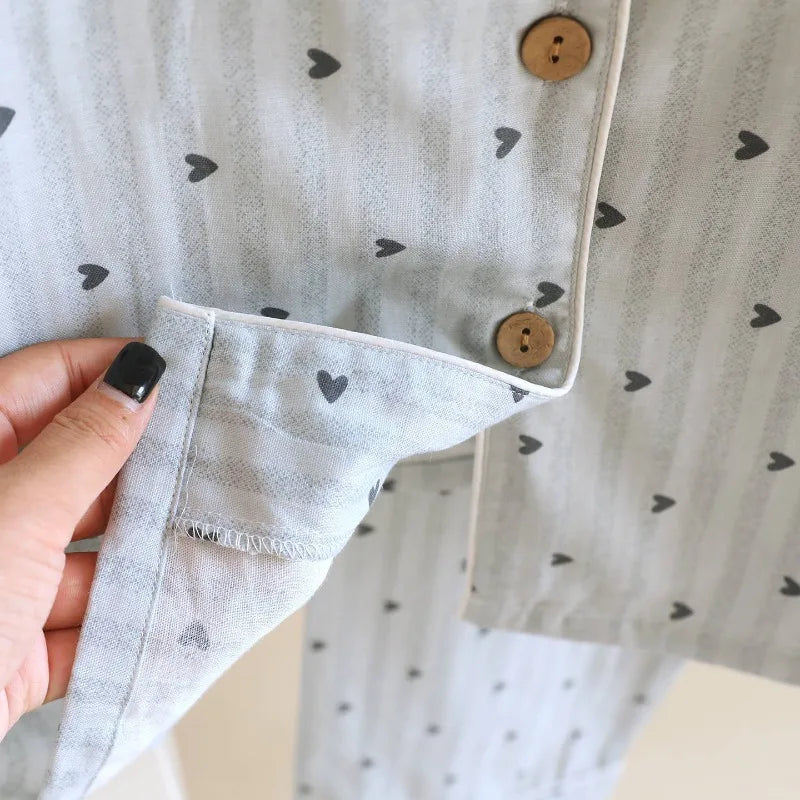 2025 Spring and Autumn Women's Pajama Set 100% Cotton Gauze Vertical Strip Love Long Sleeve Two piece Home Clothing Set
