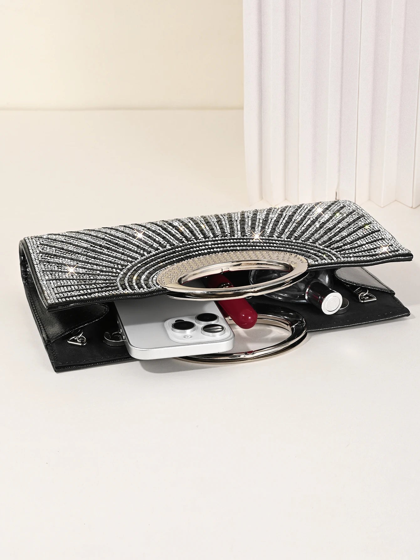 Women's Dinner Bag, European and American Retro Big Ring Clutch, Advanced Texture Diamond Flash Bridal Dinner Bag loading